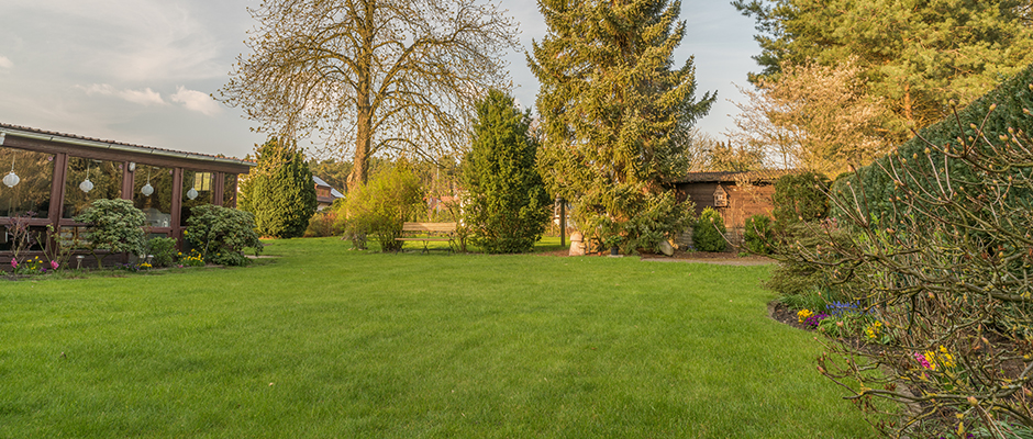 Der große ca. 1000 m² große Garten lässt sich sehr gut zum Grillen benutzen, wie auch zum Entspannen und Sonnenbaden.